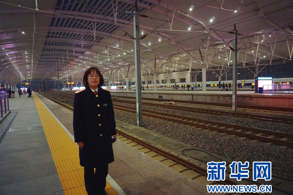 工作人員在寒風(fēng)中駐守站臺。新華網(wǎng) 李海韻 攝