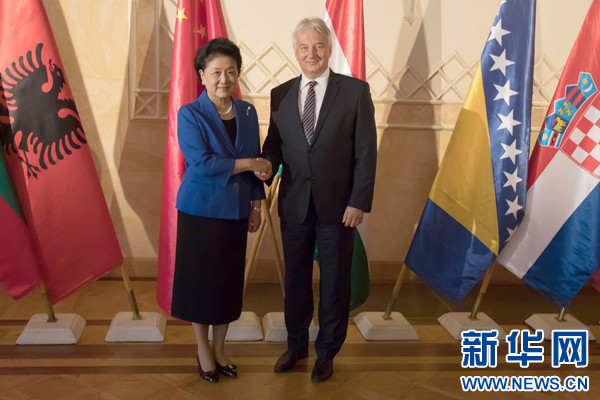 6月19日,在匈牙利布達佩斯,中國國務院副總理劉延東(左)會見匈牙利副總理謝姆延。 新華社發(fā)(弗爾季·奧蒂洛攝)