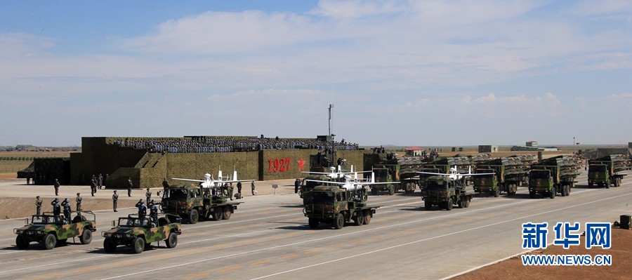 7月30日,慶祝中國人民解放軍建軍90周年閱兵在位于內(nèi)蒙古的朱日和訓(xùn)練基地舉行。中共中央總書記、國家主席、中央軍委主席習(xí)近平檢閱部隊并發(fā)表重要講話。這是無人機方隊。新華社記者 查春明 攝
