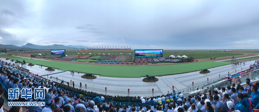 8月8日,內(nèi)蒙古自治區(qū)成立70周年慶祝大會在呼和塔拉內(nèi)蒙古少數(shù)民族群眾文化體育運(yùn)動中心舉行。圖為大會現(xiàn)場。新華網(wǎng)記者 陳杰 攝
