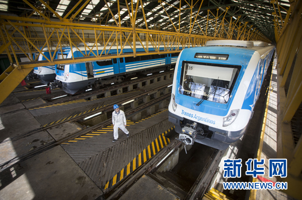 這是在位于阿根廷首都布宜諾斯艾利斯以南的利亞瓦略爾拍攝的中國中車為羅卡線城際鐵路提供的列車(4月11日攝)。新華社發(fā)(馬丁·薩巴拉攝)