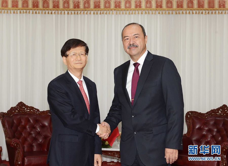 9月9日,中共中央政治局委員、中央政法委書(shū)記、中國(guó)和烏茲別克斯坦政府間合作委員會(huì)中方主席孟建柱(左)在塔什干會(huì)見(jiàn)烏總理、中烏政府間合作委員會(huì)烏方主席阿里波夫。 新華社記者沙達(dá)提攝