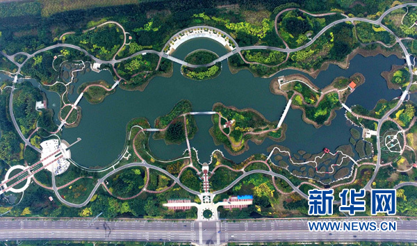 京津冀俯瞰天津濱海新區(qū)臨港經濟區(qū)的臨港生態(tài)濕地公園(2016年10月21日攝)。 新華社記者 岳月偉 攝