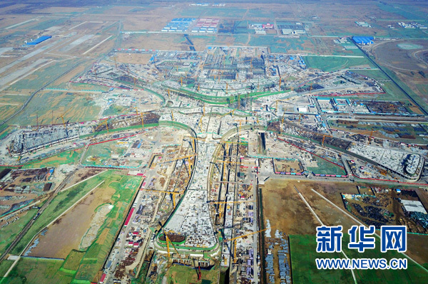這是正在施工的北京新機場主航站樓(2月24日攝)。 新華社記者 鞠煥宗 攝