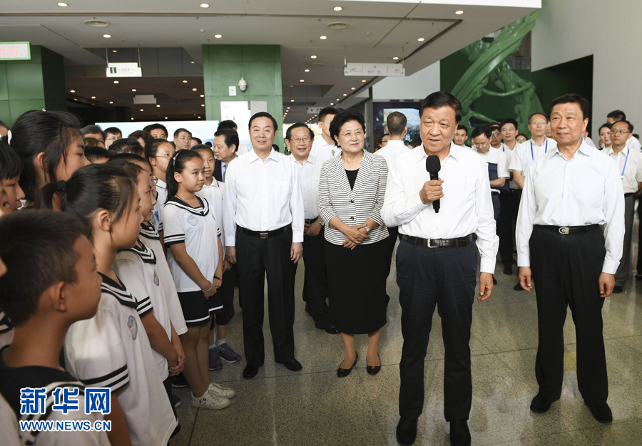 9月17日,中共中央政治局常委、中央書(shū)記處書(shū)記劉云山和劉延?xùn)|、劉奇葆、李源潮、萬(wàn)鋼等領(lǐng)導(dǎo)同志來(lái)到北京中國(guó)科技館,參加全國(guó)科普日北京主場(chǎng)活動(dòng)。新華社記者 高潔 攝