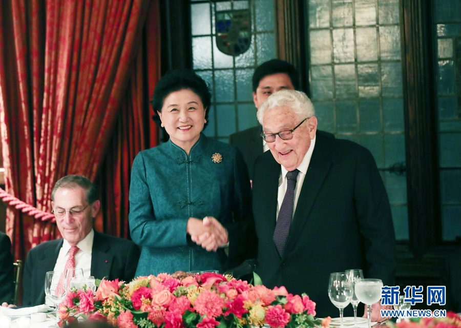 9月25日晚,中國(guó)國(guó)務(wù)院副總理劉延?xùn)|在美國(guó)紐約應(yīng)約出席基辛格博士為其舉行的晚宴。賓主雙方在輕松熱烈的氣氛中就促進(jìn)中美友好交流等問(wèn)題深入交換了意見(jiàn)。這是劉延?xùn)|在晚宴上與基辛格握手。新華社記者 王迎 攝
