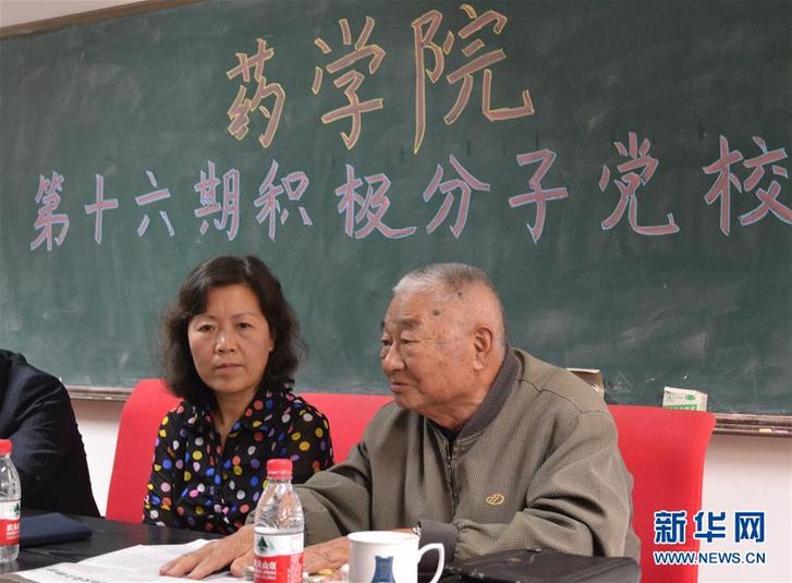 馮翠玲(左)和天津大學(xué)的老教授印邦炎為學(xué)生講黨課(2016年10月15日攝)。新華社發(fā)