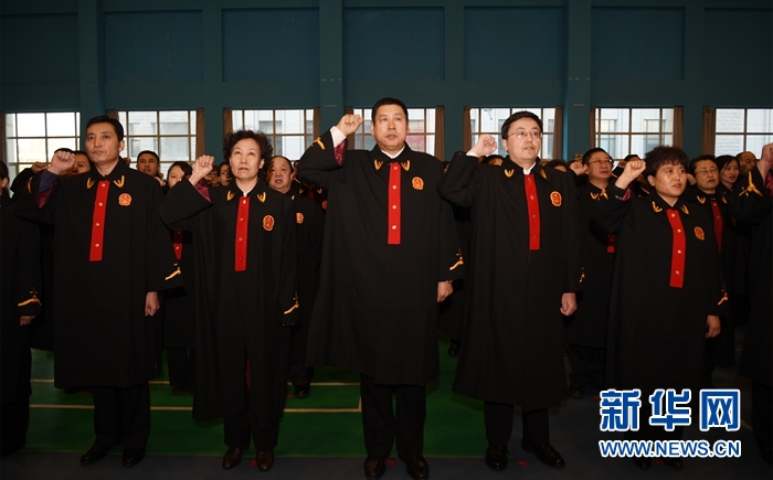 2017年1月10日,內(nèi)蒙古自治區(qū)首批156名入額法官在內(nèi)蒙古高級(jí)人民法院宣誓。司法責(zé)任制改革全面推開,12萬(wàn)多名法官、9萬(wàn)多名檢察官遴選入額,優(yōu)質(zhì)司法資源充實(shí)辦案一線。新華社記者 鄧華 攝