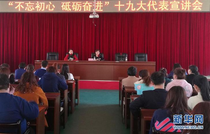黨的十九大代表、哈爾濱市道里區(qū)撫順街道撫順社區(qū)黨委書(shū)記郝麗影(前排右)在撫順街道辦宣講十九大精神(11月1日攝)。新華社發(fā)