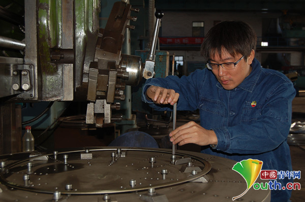 內(nèi)行人都知道,車工的技術(shù)要求極高。然而對(duì)于王尚典來(lái)說(shuō),從1998年實(shí)習(xí)接觸車床到靈活掌握車工技術(shù),僅用了三年的時(shí)間。從CA6140的小車床到加工直徑達(dá)5米的大型立式車床,機(jī)械廠所有的車床他都能操作自如,并能按圖紙熟練加工出符合工藝要求的工件。