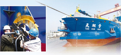 “船上鋼樁臺(tái)車(chē)安裝了4個(gè)大油缸,單個(gè)就達(dá)38噸,所有安裝誤差都只有0.2毫米”,安裝輪機(jī)車(chē)間主任沙勝紅說(shuō),“考驗(yàn)還在繼續(xù)”。輪機(jī)車(chē)間的工人全部是訓(xùn)練有素的技術(shù)員工,他們克服了難以想象的困難,硬是拿下全船高難度的設(shè)備安裝工作,質(zhì)量贏得船東、船檢的一致好評(píng)。