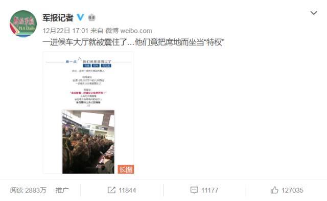 @你看鄰居家的:我在柳州站見過(guò),大概是幾百名士兵退役,車還沒(méi)到,都把東西碼好,排排坐著,在地上等車。那一刻我才理解,他們不是讓座這么簡(jiǎn)單,他們是根本沒(méi)想過(guò)要坐。