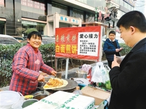 這一免費(fèi),就是9年。有時(shí)候每天要免費(fèi)送出10余個(gè)煎餅果子。每當(dāng)有拾荒者、殘疾人、環(huán)衛(wèi)工路過,趙彥蘋還會(huì)主動(dòng)上前詢問,一個(gè)不夠,就兩個(gè)、三個(gè),直到對(duì)方吃飽,偶爾她還會(huì)塞給對(duì)方幾十元錢?!澳軒鸵粋€(gè)是一個(gè)!”為了讓更多人吃到免費(fèi)的煎餅果子,夫妻倆還印制了厚厚一沓“愛心接力”名片。“有些人不知道我這個(gè)小攤,但是通過名片,他們就可以給我打電話,或者找朋友捎回去?!?/p>
