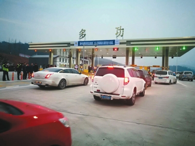 2017年12月31日下午5時許,在雅康高速多功收費站外,雖然高速尚未開通,二十余輛小轎車已排起了隊,等待駛入雅康高速。多功收費站位于雅安市天全縣和二郎山之間,主要是為蘆山、寶興方向的車輛設站,在雅康高速開通前,去瀘定必須翻越二郎山,如今高速開通,15分鐘便可穿越巍巍二郎山。下午6點,雅康高速雅安至瀘定段各收費站準時向社會車輛開放,標志著雅康高速雅安至瀘定段正式試通車。本次試通車的雅瀘段全長95公里,開通4個收費站:多功、天全、新溝、瀘定,ETC同步投入使用;開通天全服務區(qū),可滿足如廁、臨時加油、停車等基本需求。
