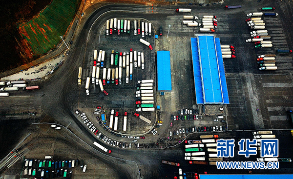 1月16日,來自東盟國家的貨車在憑祥市邊境貿(mào)易監(jiān)管中心等候裝運貨物。新華社記者 張愛林 攝