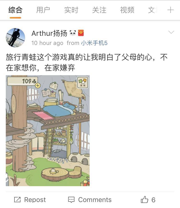 《旅行青蛙》在中國社交網(wǎng)絡(luò)的流行,也在于那種低欲望、佛系、一個人生活、又能怡然自樂的年輕人越來越多了。2018-01-24 09:08:09
