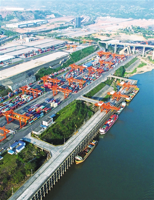 圖為重慶果園港,中歐國(guó)際貨運(yùn)大通道與長(zhǎng)江黃金水道實(shí)現(xiàn)“無(wú)縫連接”。新華社記者 劉潺 攝