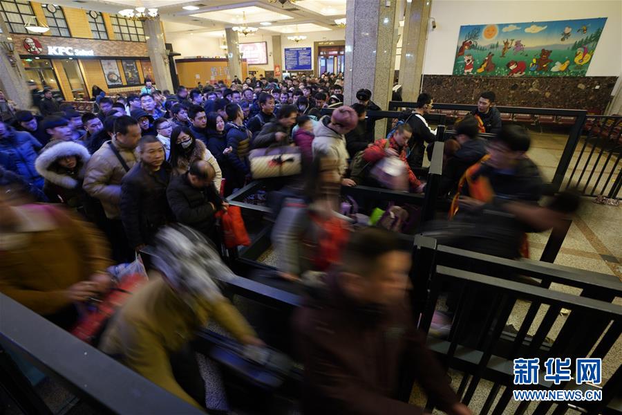 2月1日凌晨,乘坐由北京站發(fā)往重慶北站的3603次列車的旅客在北京站進(jìn)站乘車。當(dāng)日,2018年春運正式啟動。新華社記者 邢廣利 攝