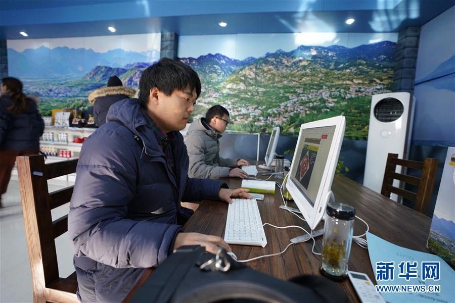 在山東省臨沂市費縣大田莊鄉(xiāng)黃土莊村的奇尚農(nóng)村電商服務(wù)中心,工作人員在處理來自全國各地的訂單(1月23日攝)。新華社記者邢廣利 攝