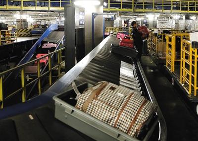 工作人員介紹,首都機場T3行李處理系統(tǒng)作為世界最繁忙的行李處理系統(tǒng)之一,輸送設(shè)備總長度達68公里,相當(dāng)于北京四環(huán)路的長度,設(shè)計高峰行李處理能力為19000件/小時。