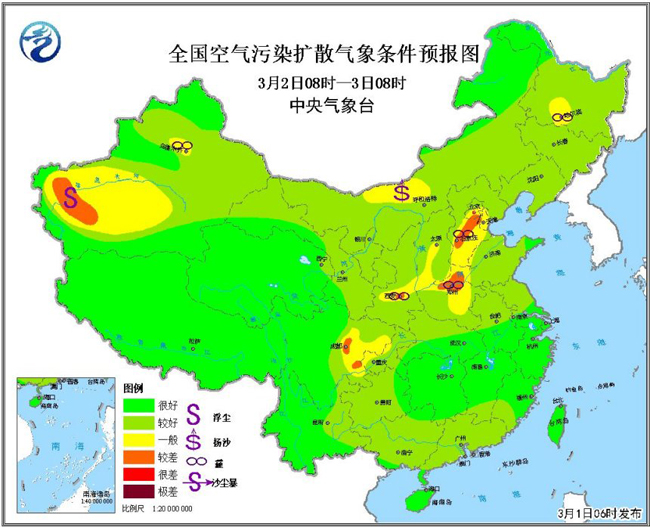 3月1日至7日,南方地區(qū)還將持續(xù)多陰雨天氣,強度多以小到中雨為主,其中3日至4日,江南、華南北部部分地區(qū)有大雨、局地有暴雨,并可能伴有強對流天氣。南方陰雨間歇期,還可能出現大霧天氣,這些地區(qū)的公眾出行時一方面要注意道路濕滑造成的不便,另一方面還要防范低能見度的影響。