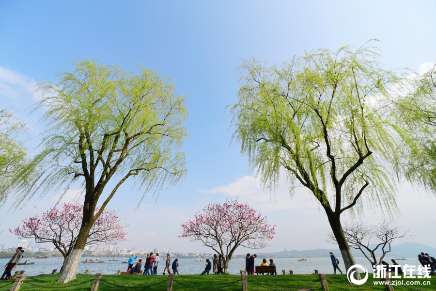 3月26日,雨后西湖再度晴歸。西湖白堤,正是桃紅柳綠時(shí)。(浙江在線拍友 里爾 攝)