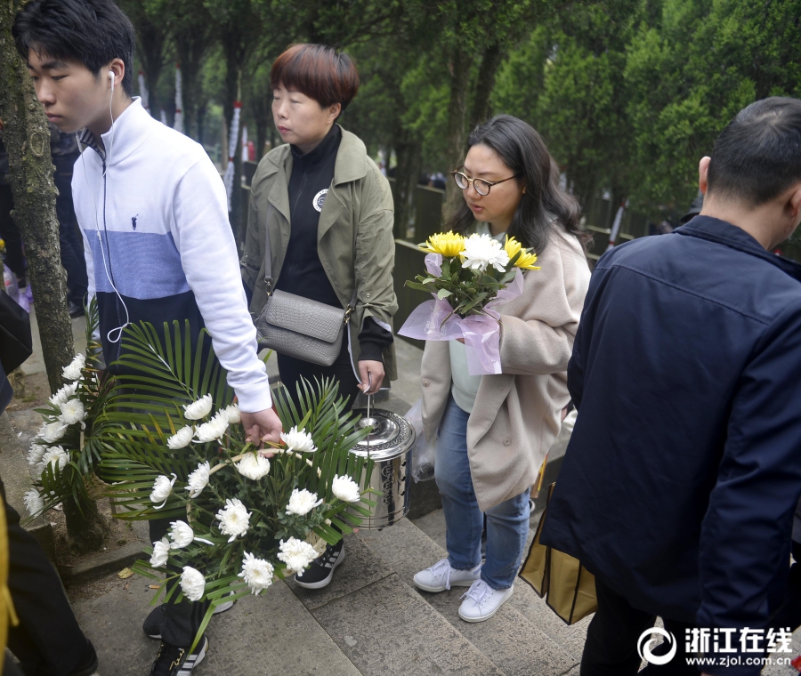 4月5日清明節(jié)上午,前往浙江省定舟山市定海區(qū)清陵掃墓人絡(luò)繹不絕,不少掃墓人用鮮花祭祀,寄托哀思懷念逝去的親人,倡導(dǎo)環(huán)保綠色的清明。(浙江在線拍友 胡社友 攝)