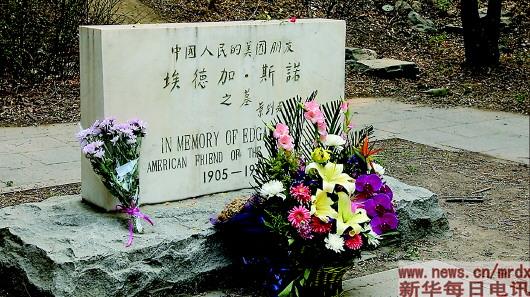 兩位美國(guó)人埃德加·斯諾與喬治·海德姆(中文名馬海德)1936年奔赴陜北革命圣地,與中國(guó)結(jié)下不解之緣。他們逝世后,部分骨灰分別安葬在北京大學(xué)未名湖畔、八寶山革命公墓,每到清明節(jié)或者他們的忌日都會(huì)有莊重的悼念活動(dòng)。