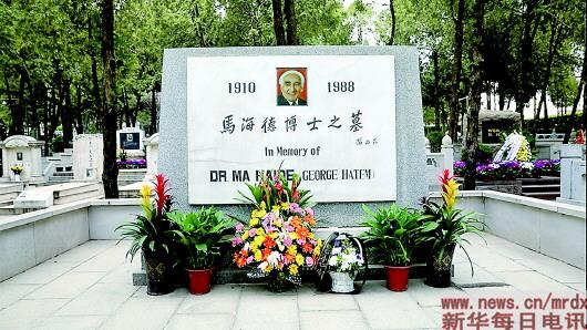 八寶山革命公墓里,蒼松翠柏掩映,馬海德的墓碑十分顯眼。墓碑上端鑲有馬海德的照片,兩側(cè)分別是他生卒的年份。墓碑中間刻有時(shí)任國(guó)家主席楊尚昆題寫的“馬海德博士之墓”七個(gè)大字。