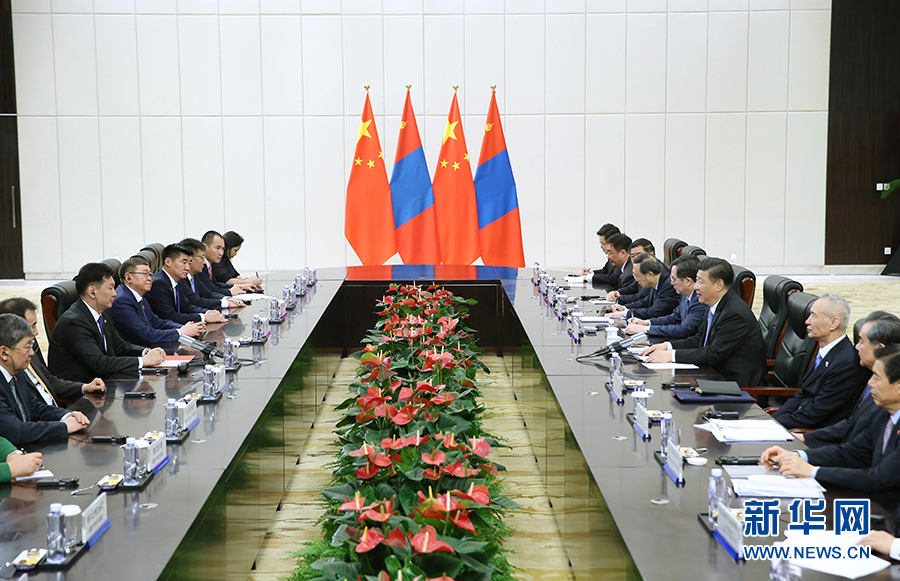 習近平指出,中方始終將中蒙關系放在周邊外交重要位置。我們將推動建設人類命運共同體,繼續(xù)按照親誠惠容理念和與鄰為善、以鄰為伴的周邊外交方針,深化同蒙古國的關系。當前,中蒙關系處在新的歷史階段。雙方要本著互信、合作、共贏原則,抓住機遇,推動中蒙全面戰(zhàn)略伙伴關系向前發(fā)展。