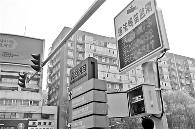 昨天下午,北青報(bào)記者來到黃莊路口西北角,周圍鳴笛聲不斷,嘈雜一片。很快,西北角路口處懸掛的LED顯示屏上,就出現(xiàn)了違法鳴笛車輛的車牌號信息。