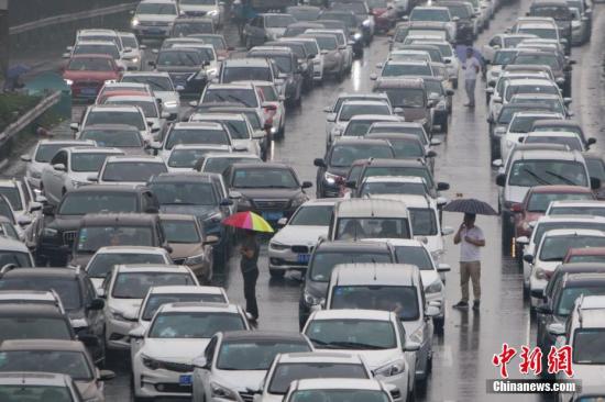 資料圖:高速公路上大量車輛擁堵。中新社記者 泱波 攝