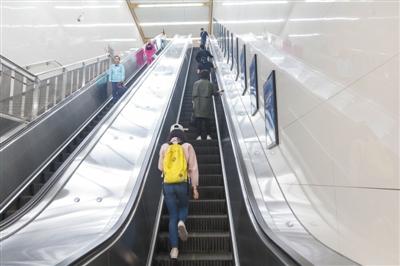 昨日(25日),北京磁器口地鐵站自動扶梯,行人“左行右立”。實習生 陳婉婷 攝
