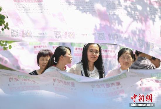資料圖:相親會(huì)上,女孩觀看“征婚信息”。中新社記者 張勇 攝