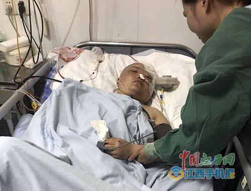 5月7日下午,江南都市報全媒體記者與劉慧芳的丈夫楊育華取得了聯(lián)系,他告訴說,他趕到現(xiàn)場時,妻子已經(jīng)不省人事。妻子被送到都昌縣人民醫(yī)院,搶救后又轉(zhuǎn)到九江市的醫(yī)院,經(jīng)檢測發(fā)現(xiàn),妻子身體多處骨折,顱腦重型損傷左側(cè)腦部膜外出血,傷勢十分嚴重,當晚就做了手術。醫(yī)生說,如果晚來一步,妻子可能就有生命危險。