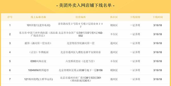 在“安全承諾”公示旁邊附有“下線名單公示專(zhuān)欄”,點(diǎn)開(kāi)即三大平臺(tái)的“因食品安全問(wèn)題下線商戶(hù)名單”。食藥監(jiān)管部門(mén)查處的、消費(fèi)者投訴舉報(bào)后核實(shí)的、平臺(tái)自查出來(lái)的商戶(hù)名單都將放入這個(gè)欄目,隨時(shí)更新。下線名單的格式項(xiàng)目包括商戶(hù)名稱(chēng)、經(jīng)營(yíng)場(chǎng)所、所屬區(qū)、下線原因以及下線時(shí)間。