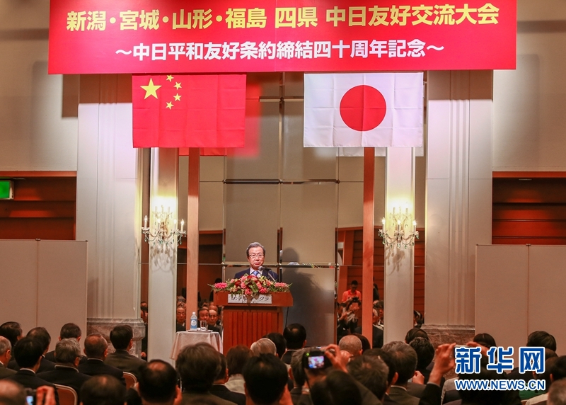 新華社日本新潟5月23日電(記者姜俏梅 馬曹冉)為紀(jì)念中日和平友好條約締結(jié)40周年,由中國(guó)駐新潟總領(lǐng)事館主辦的新潟、宮城、山形、福島等日本4縣中日友好交流大會(huì)22日下午在新潟縣新潟市舉行,來(lái)自上述4縣的政界代表、中日友好人士300余人與會(huì),就中日關(guān)系發(fā)展問(wèn)題進(jìn)行廣泛交流。