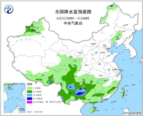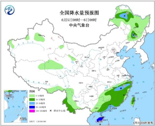 全國降水量預(yù)報圖(6月3日08時-4日08時)