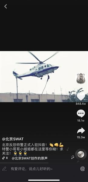 “相比文字,用視頻展現(xiàn)特警隊(duì)的隊(duì)伍形象和精神面貌更有視覺(jué)沖擊力?!被谶@樣的考慮,北京市公安局反恐特警總隊(duì)開(kāi)設(shè)了首個(gè)新媒體宣傳賬號(hào)。