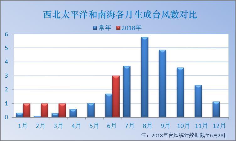 到目前為止,今年西北太平洋和南海已經(jīng)有6個(gè)臺(tái)風(fēng)生成,1個(gè)臺(tái)風(fēng)登陸我國,常年1-6月平均會(huì)生成4.1個(gè)臺(tái)風(fēng),登陸0.63個(gè)。實(shí)際上今年無論生成臺(tái)風(fēng)個(gè)數(shù)還是登陸個(gè)數(shù)都比常年平均偏多。