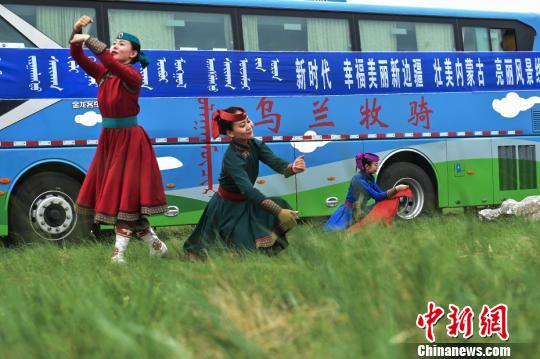 圖為蘇尼特右旗烏蘭牧騎演員們演出現(xiàn)場?!〉澡?攝
