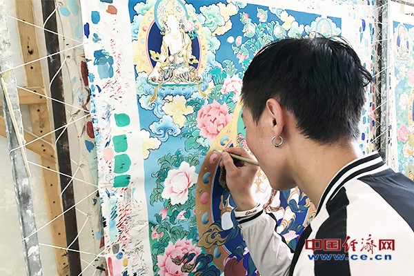 圖為正在畫院進(jìn)行唐卡創(chuàng)作的學(xué)徒 經(jīng)濟(jì)日報-中國經(jīng)濟(jì)網(wǎng)記者 秦爽/攝