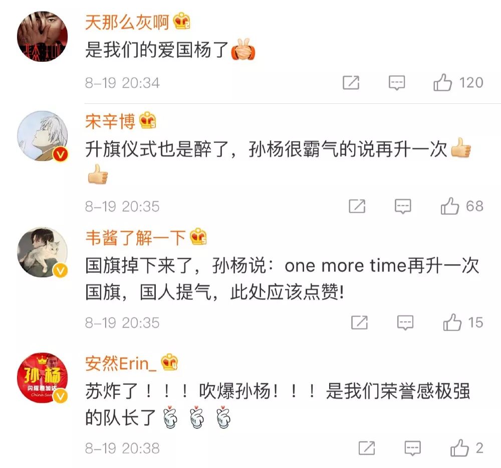 孫楊看到國旗桿掉落