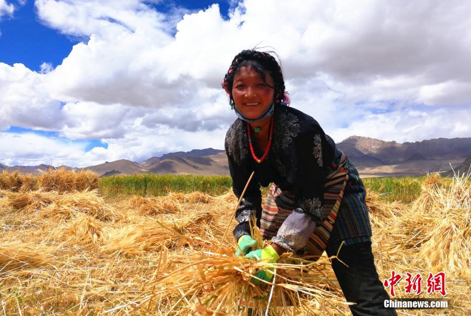 青稞作為青藏高原特有的糧食作物,是西藏種植面積最大、產(chǎn)量占糧食作物比重最高的農(nóng)作物。進(jìn)入9月,西藏也將迎來(lái)首個(gè)“中國(guó)農(nóng)民豐收節(jié)”,2018年,西藏青稞的總種植面積將增至211萬(wàn)畝,產(chǎn)量將突破80萬(wàn)噸。圖為9月12日,日喀則市定日縣扎果鄉(xiāng)的農(nóng)牧民次仁曲珍在地里收青稞。 中新社記者 趙延 攝?