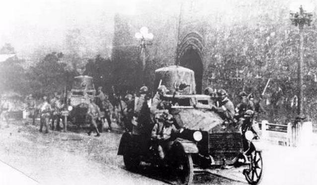 圖示:日軍裝甲車行駛在沈陽的大街上