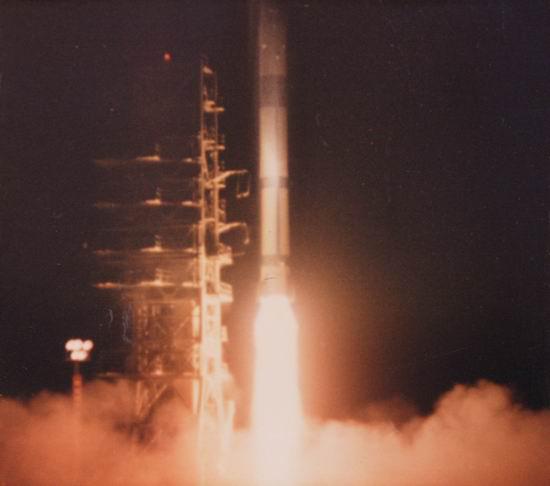 圖示:1970年4月24日,運載我國第一顆人造地球衛(wèi)星的“長征”一號運載火箭成功發(fā)射