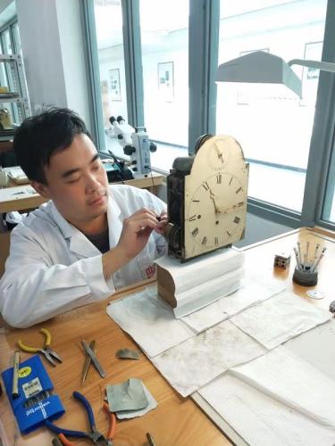 面對故宮珍藏的1500多件古鐘表,那時的鐘表組只有王津和徒弟亓昊楠兩個人。