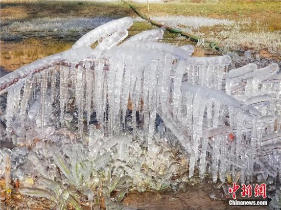 10月10日,甘肅肅南縣經(jīng)歷一場降雨降溫天氣,出現(xiàn)大面積冰掛景觀。樹木花草被“冰封”,在陽光下宛如玉樹瓊花,將肅南縣妝點(diǎn)得如詩如畫。索國民 攝