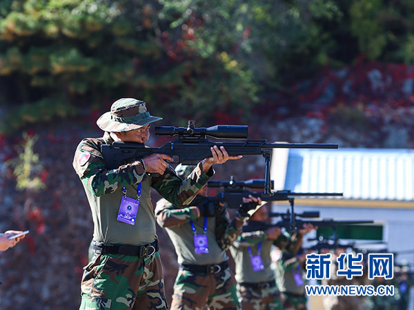 10月18日,參賽隊(duì)員在多種姿勢(shì)狙擊課目中采用立姿進(jìn)行狙擊。新華社發(fā)(安曉惠 攝)
