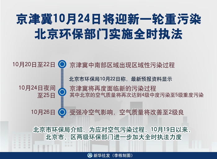 圖表:京津冀10月24日將迎新一輪重污染 北京環(huán)保部門實(shí)施全時執(zhí)法 新華社發(fā) 李棟 制圖